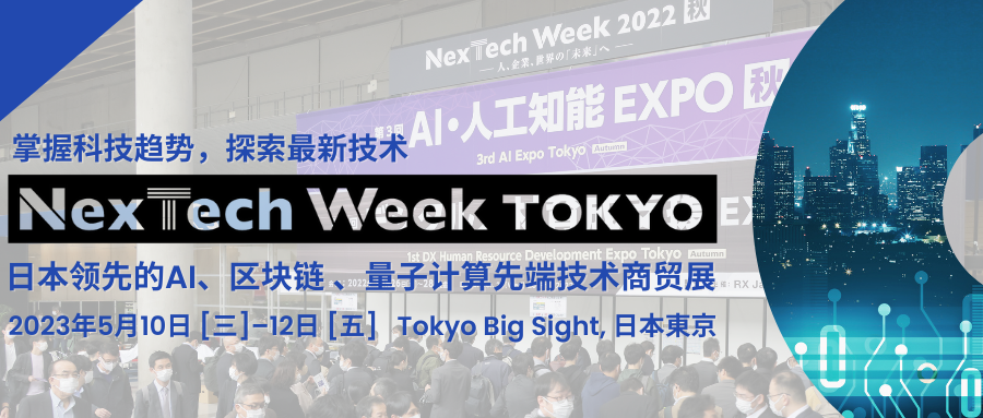2023/04/27加入您的商務(wù)行程—邀請參訪日本先端技術(shù)盛宴!(5月10-12日@東京)文末掃碼申請免費(fèi)觀眾入場券▋國內(nèi)外300家展商云集 —掌握科技新趨勢NexTech Week Tokyo是日本領(lǐng)先的AI人工智能、區(qū)塊鏈、量子計(jì)算先端技術(shù)商貿(mào)展。今春的展會(huì)預(yù)計(jì)匯集300家展商共襄盛舉。其中包含日本知名老牌企業(yè).... -